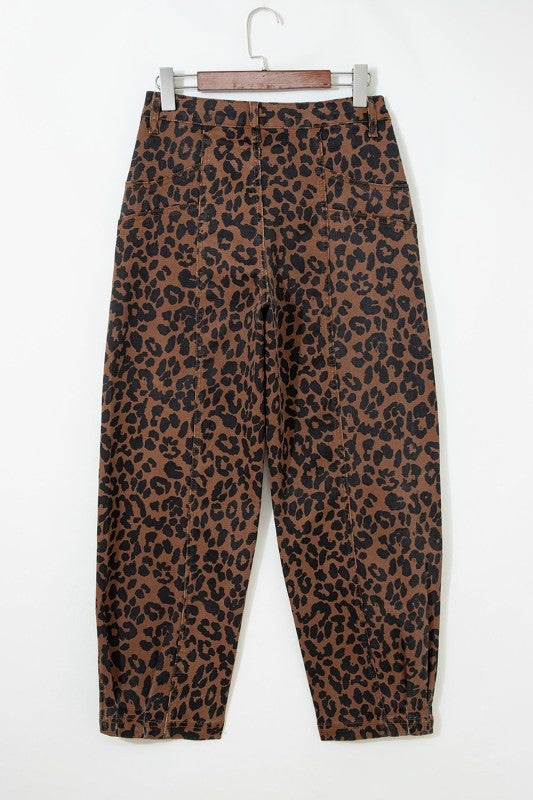 Meet our latest leopard jeans, a show-stopping style loved by all ages. These barrel-cut jeans feature bold leopard print with striking clear seam details and a flattering high-rise fit. Spacious pockets add practicality, while the versatile design pairs effortlessly with any top for endless styling possibilities, from casual to dressed-up looks. Cotton/Polyester/Spandex