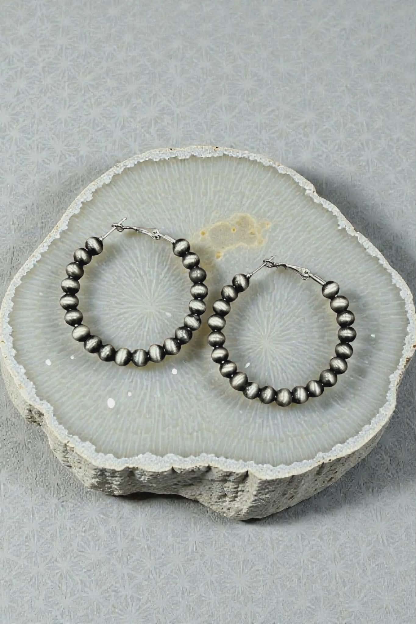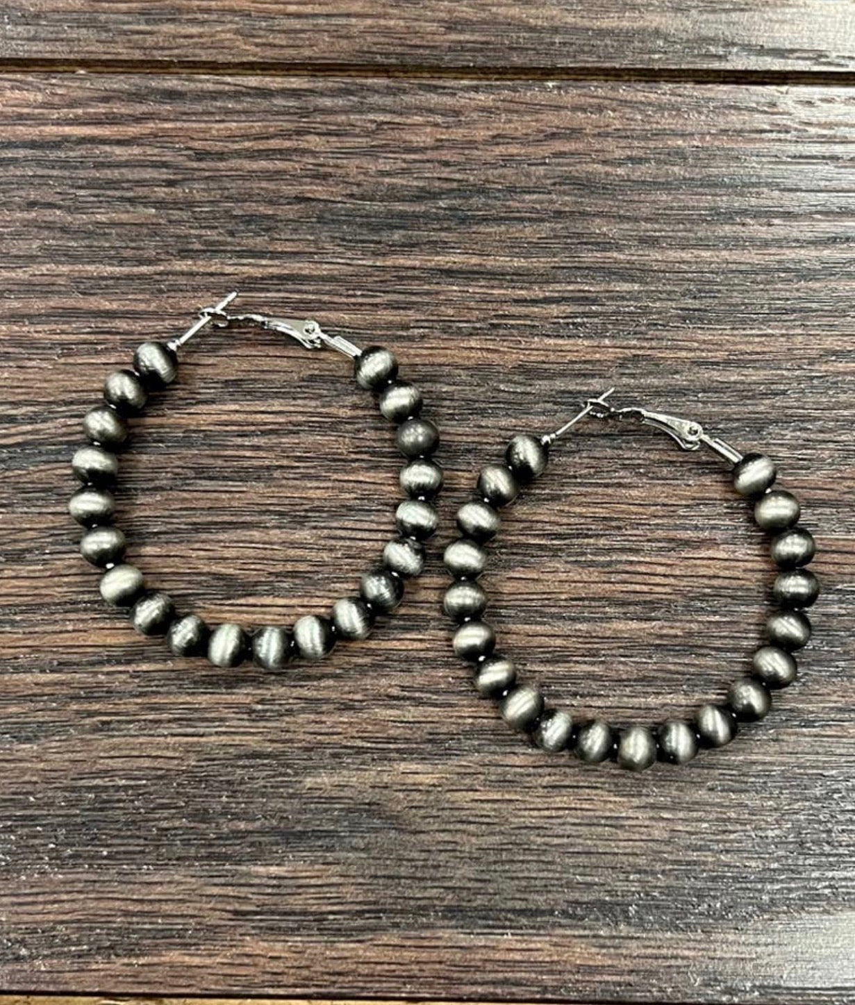1.75" Long, 6mm Navajo Bead, 45mm Hoop Earrings