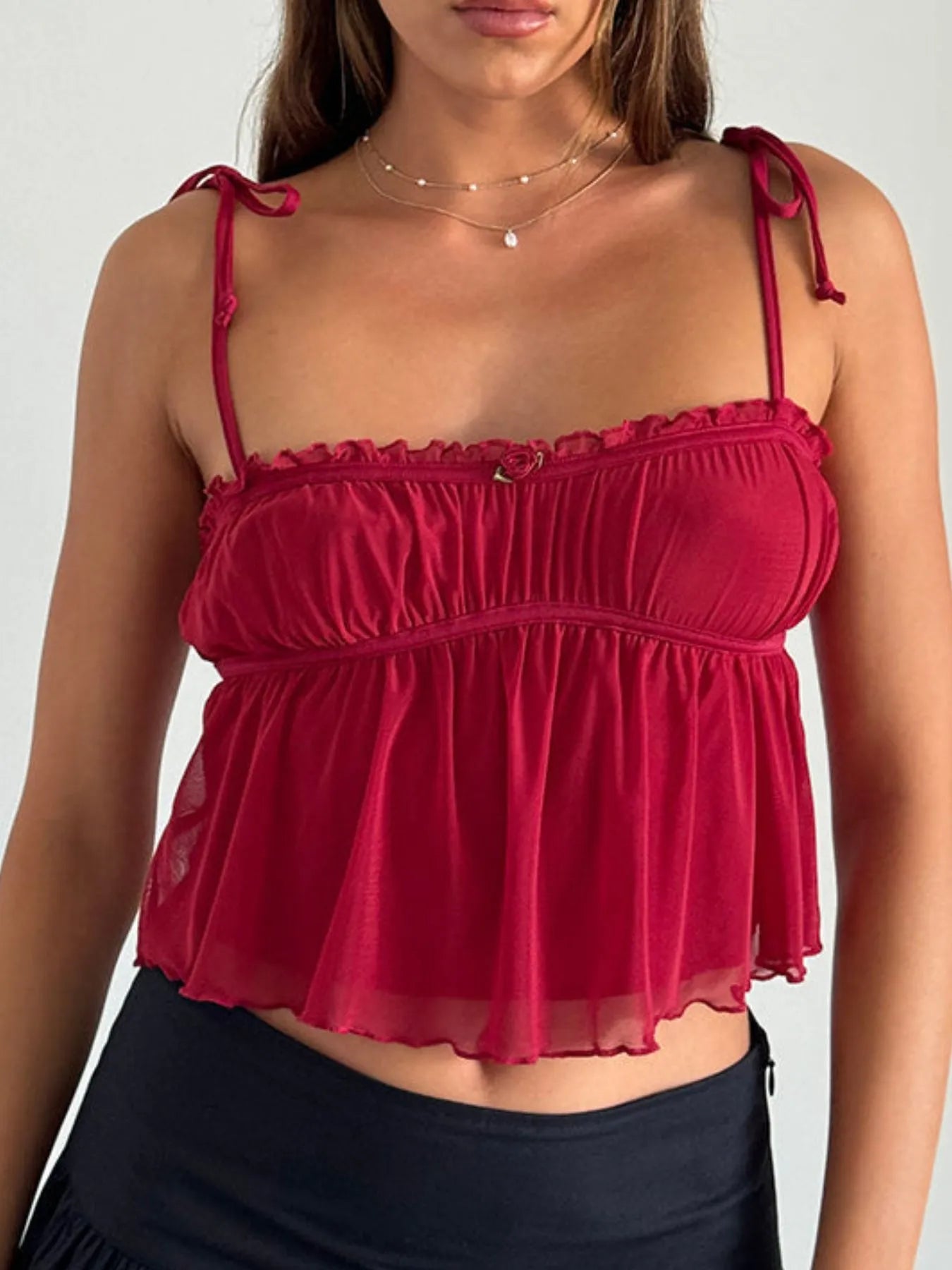 - Features:Frill,Bow,Ruched,Tied